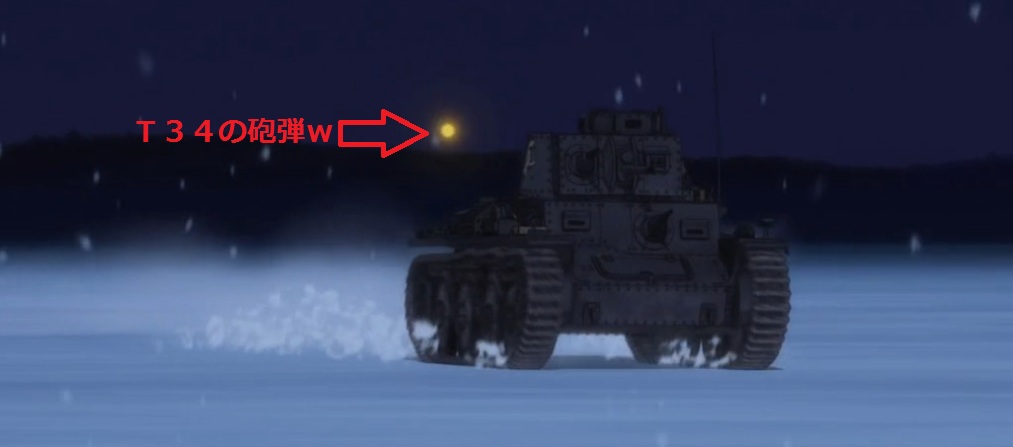 生徒会チームのLT-38の37mm砲では、T-34の側面装甲にほぼ直角に当てるか、後部を撃たなければとても貫けないのですが、T-34の76mm砲はどの角度でもとにかく命中させればLT-38を撃破できます。