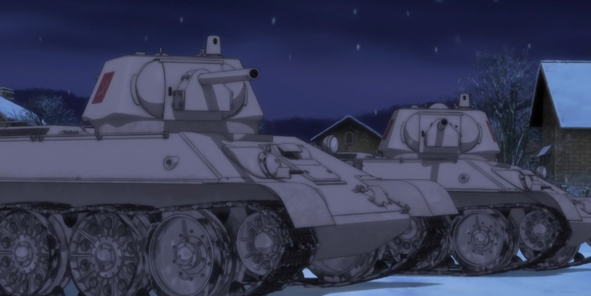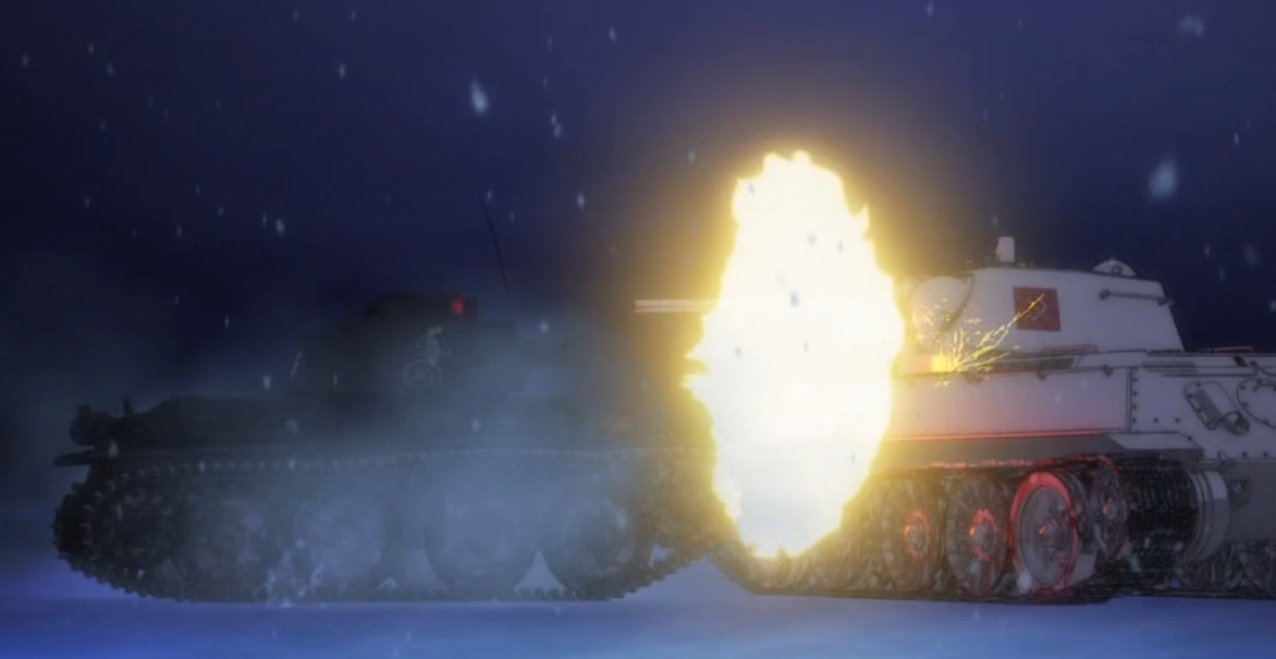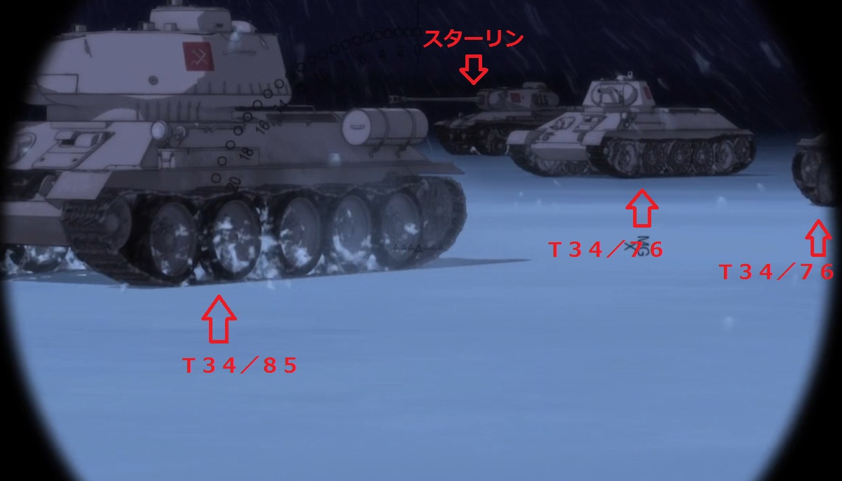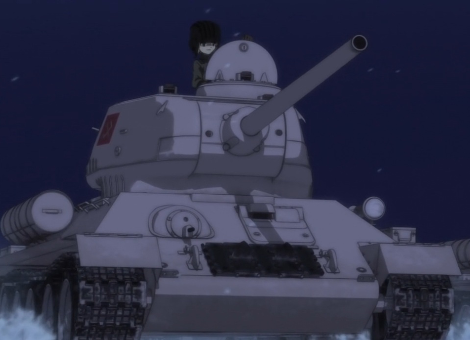 ちなみに、プラウダ高校主将のカチャーシャが乗っている車両は、85mm砲搭載のT-34/85。