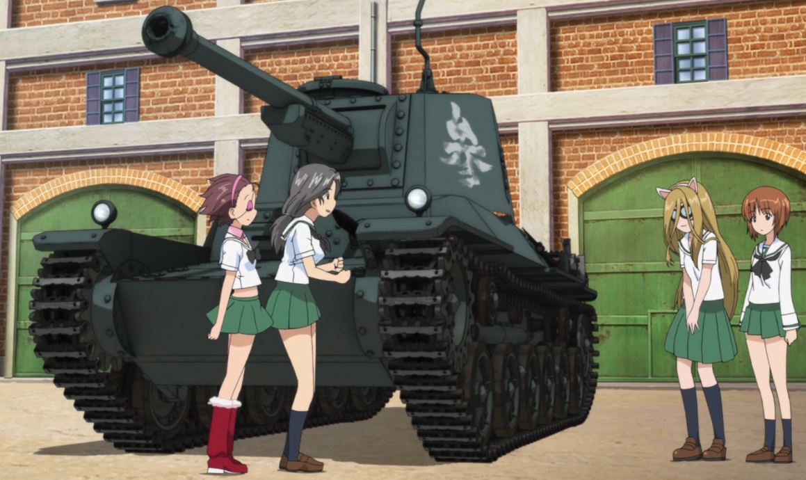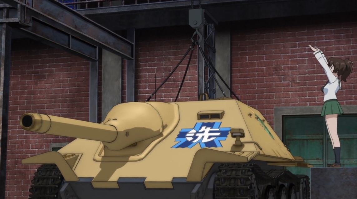 後半の決勝戦時には、この戦車、普通に隊列組んで行動しているのですが、動かしている自動車部員チームの奮闘ぶりだけでタブン、丸1話くらいのエピソードになるのではないかと思います (^^;