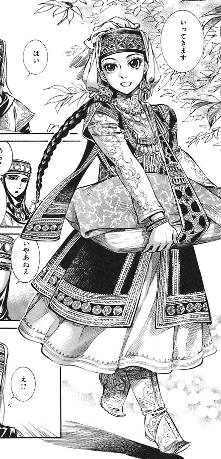 1~2巻の主人公夫婦、カルルクが理知的で大人しい性格なのに対して、アミルは弓の扱いも得意なワイルドさ。