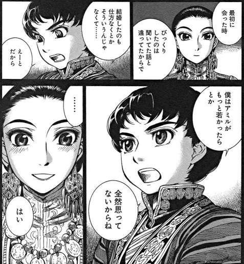 と、カルルクの年齢を正当化すればするほど、ハタチのアミルのお局度が強調されてしまうわけで、なぜエイホン家はこの縁談を承服したのかよくわかりませんが、恐らくは、ハルガル家との「お家の事情」によるところなのでしょうネ、、、。