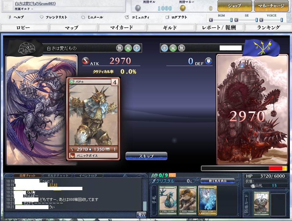 ・・・と言いたいところなのですが、例え、多少火力負けしていても一定確率でクリティカルが発生すると、敵プレイヤーの防御カードを破壊することが可能です。