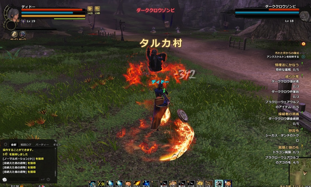 一応、ノンターゲッティングシステムなのですが、直近の正面180度(※体感)のmobは自動的にターゲットされるので、とにかく敵に張りついてスキル連打でなんとかなる親切設計。