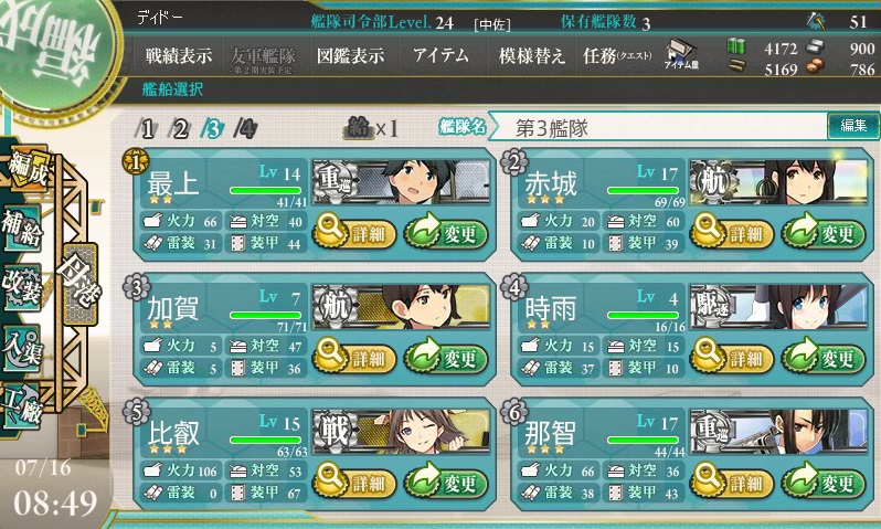 最初は第1艦隊しか編成できませんが、クエをこなすことで第4艦隊まで開放できます。