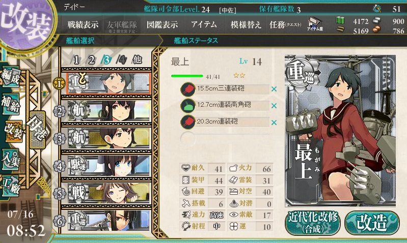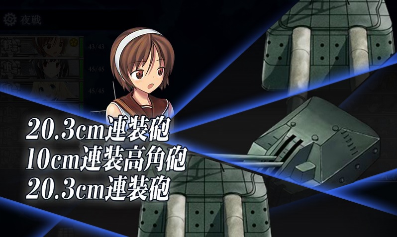 初期装備には零式水上偵察機もついていたのですが、偵察は空母艦載機にやらせる主義なので、偵察機を下ろして、代わりに高角砲を載せてみました。