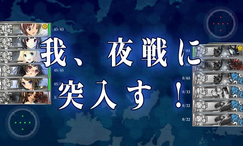 もちろん、敵艦隊と遭遇したり、味方に空母がいると先制攻撃のカットインが入ったり、一度の交戦では決着がつかない場合は夜戦に突入したり、夜戦だとクリティカル攻撃が炸裂したりします。