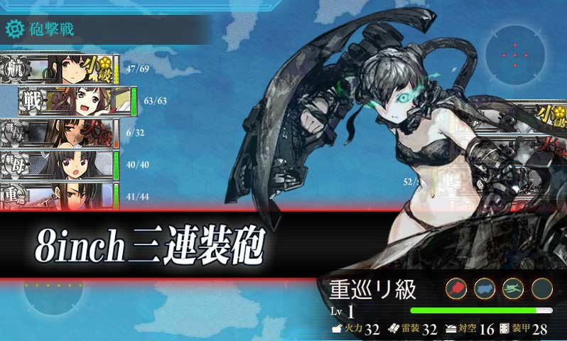 色々レベルを上げたり、合成して性能強化した艦がロストすると悲しいので、艦隊に小破した艦が出た時点で退却しておくのが吉ですネー(^^;