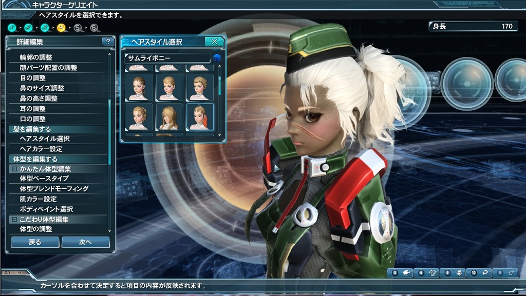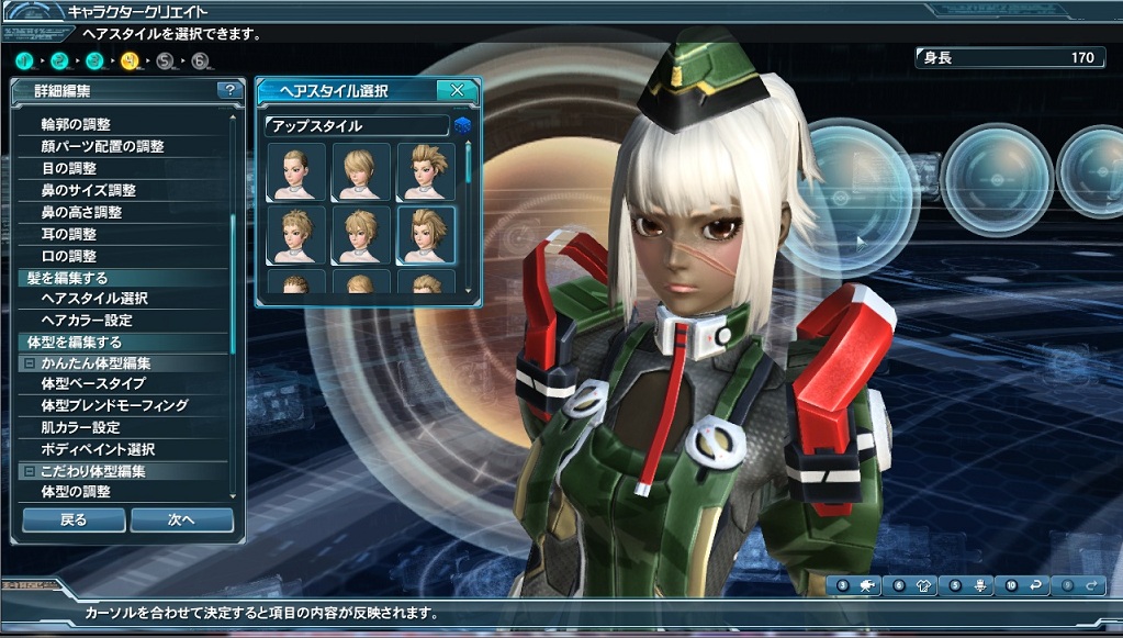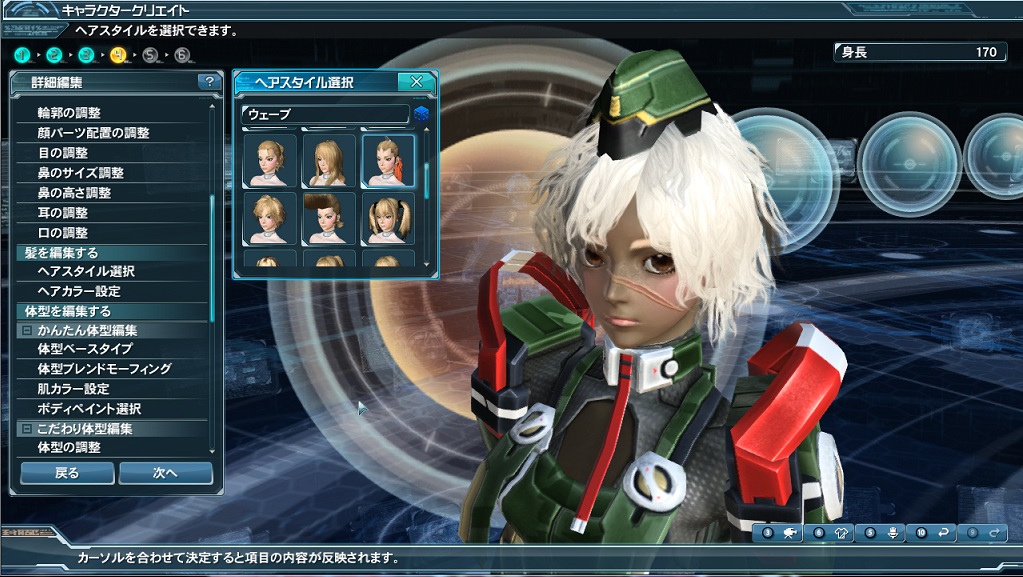 PSO2のキャラ作成画面は、こんな感じです。※画像はすべてクリックで拡大します。